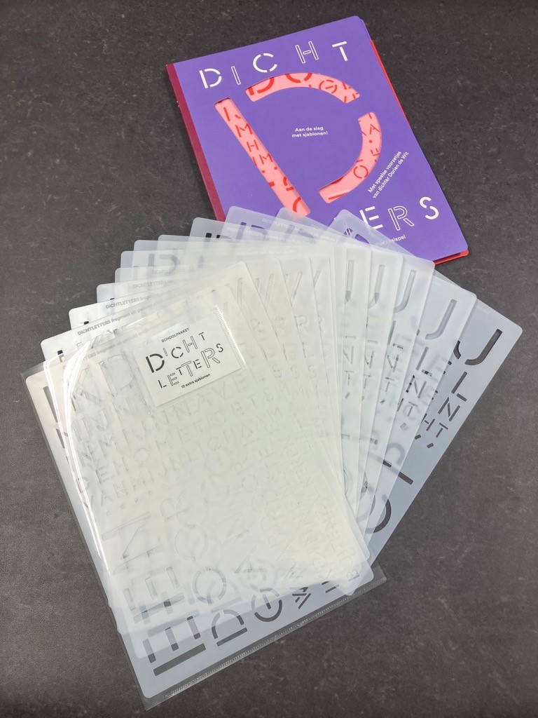 Dichtletters is een doeboek voor spontaan en creatief taalspel ontwikkeld door Janna en Hilde Meeus met speelse voorzetjes van dichter Dorien de Wit. Want wie zegt dat dichten moeilijk is? Dichtletters speel je samen of lekker alleen. Gebruik je handen en je hoofd. Met de poëtische sjablonen tover je aan de hand van speelse opdrachten je eigen poëziekaarten. Dichten wordt zo licht als een potje pingpong! Ideaal voor taalliefhebbers van alle leeftijden. De ‘gewone’ versie heeft 2 grote dichtsjablonen en kost €20,-. Deze XL versie, ideaal voor een hele klas, bevat 14 dichtsjablonen en kost €100,-. Beide bevatten een boekje met prikkelende ideeën en mooie, stevige kaarten om op te werken. Mogelijkheden genoeg voor eindeloos veel, luchtig en spelenderwijs, dichtplezier. Leuk voor jezelf, ook leuk voor een ander!